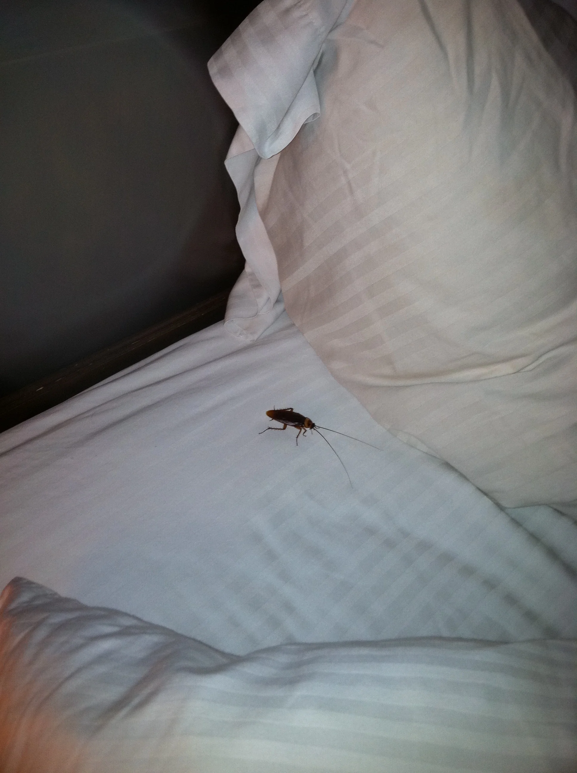 The cockroaches are real. The smaller ones disappear under the bed. The bigger ones don't. I am pretty sure one is smoking and asking me why I am not wearing pants.